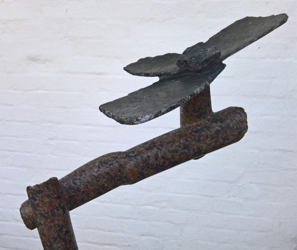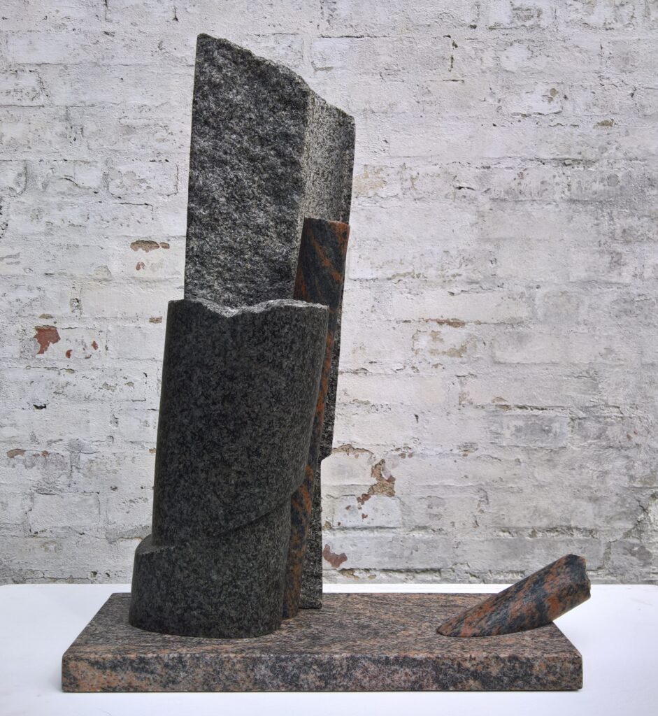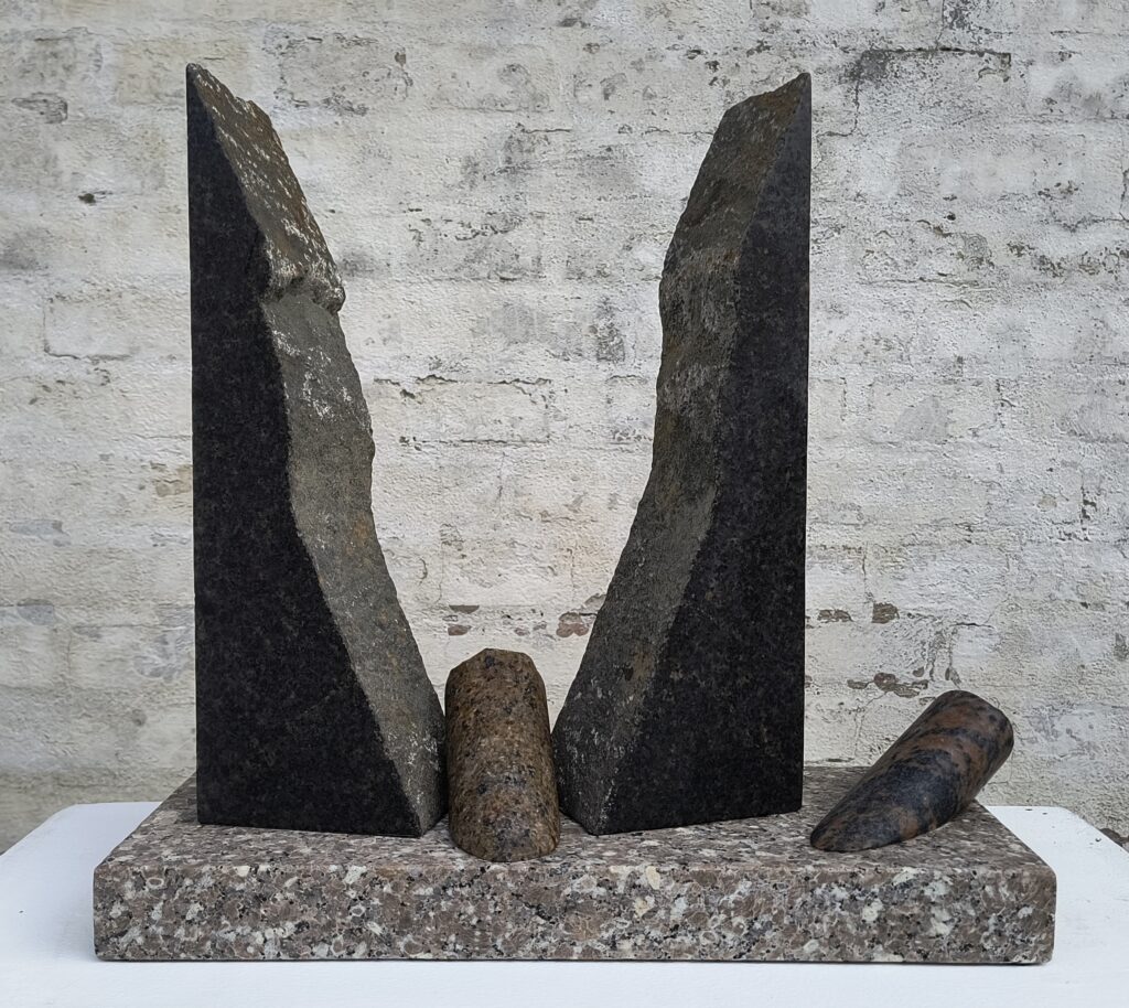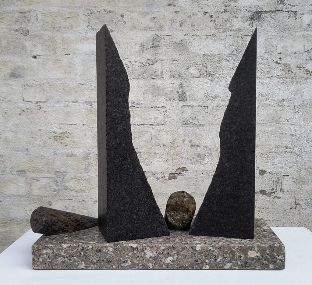 Skulptur / model af vandkunst (H: 2,8m). Paradisbakke-migmatit, marksten og skifer.
